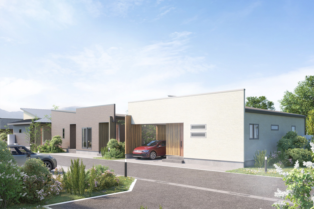 エースホームの住宅を現地で体感して頂きたいとの思いから、分譲地のうち3区画では建売住宅として「FLAT-X」「FLAT HOUSE」という平屋建てプランを建築・販売します。