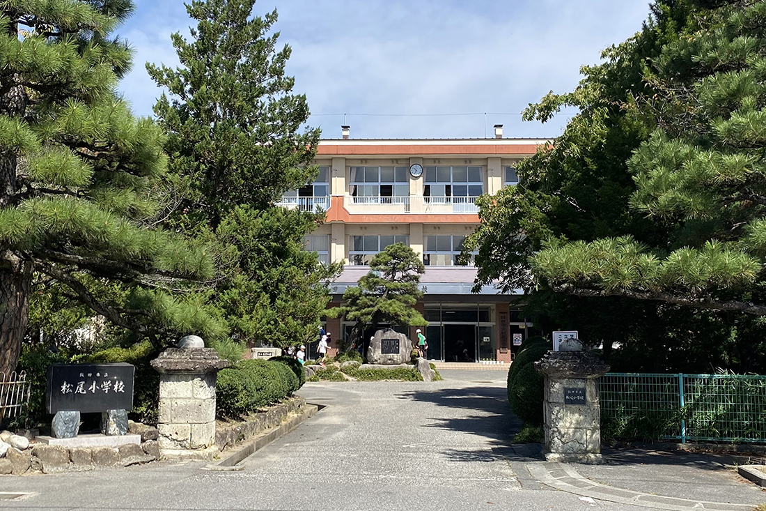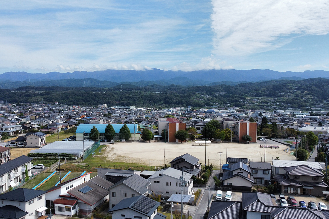 松尾小学校までは分譲地から約290メートル。校庭で遊ぶ子どもたちの元気な声が聞こえてくる。