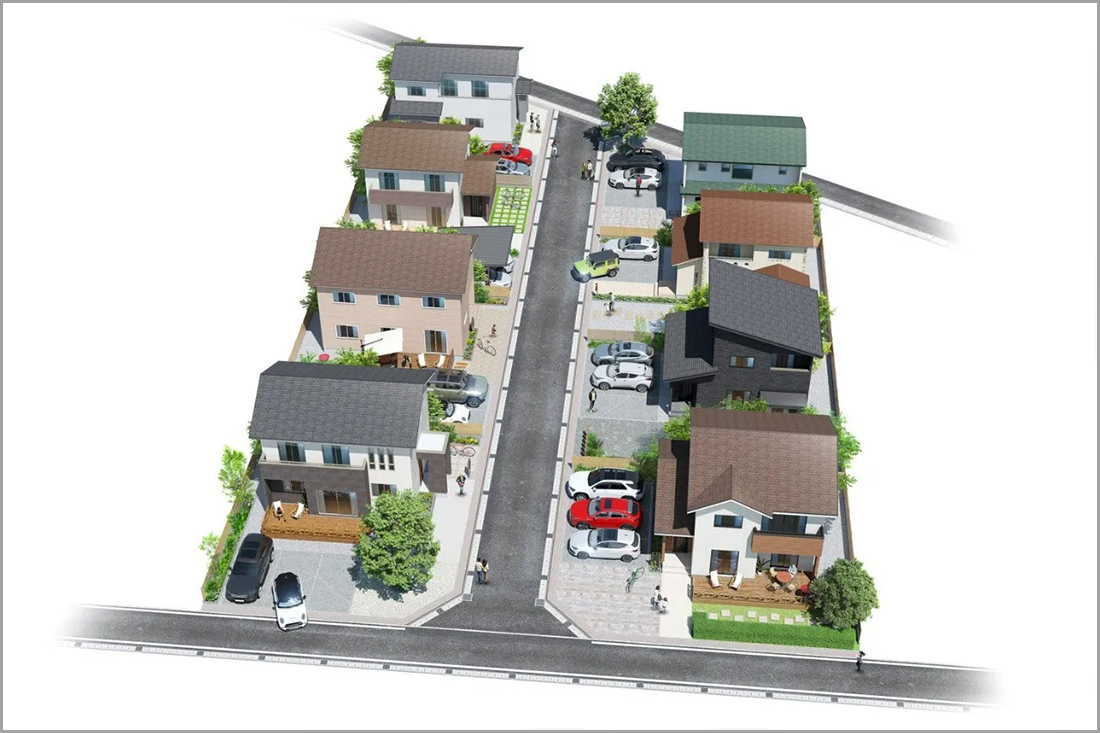 ありがとうございます。全8区画で整然とした区画割りになっており、開放感と安心感のある街並みを形づくっています。新しい生活を気持ちよく始めていただけると思います。