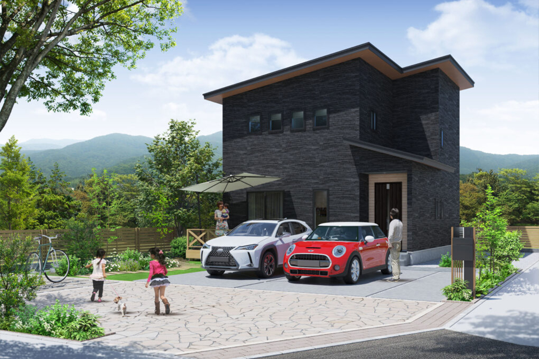 ヤマウラが建てる住宅の一例(外観パースイメージ)。希望に合わせた住まいを提案する。