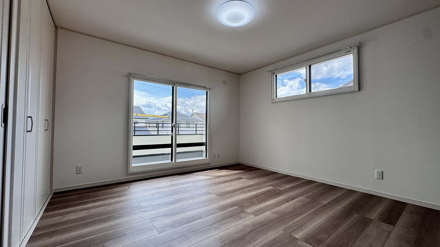 2階の洋室(8帖)は、主寝室にぴったり。南向きの大きな窓からたっぷりと陽光が入り、朝は自然な光で心地よく目覚めることができる。