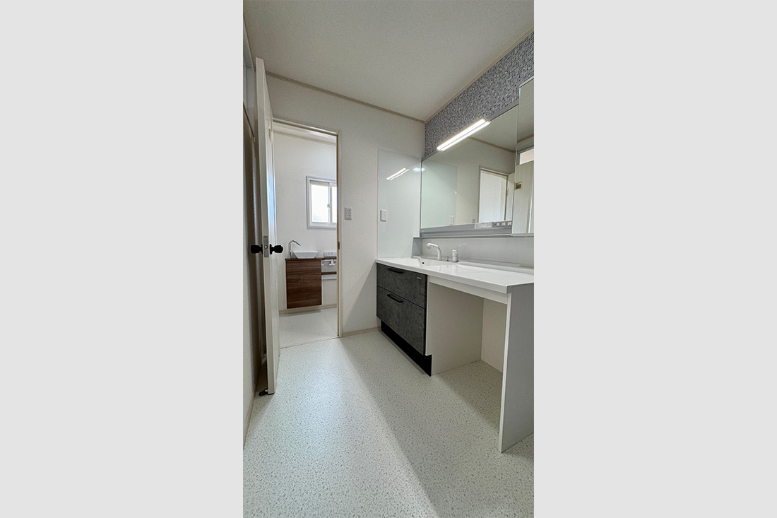 水回りはキッチンには未使用品を、それ以外はすべて新品に交換済みです。浴室には浴室乾燥機や追焚機能が備わっており、雨の日や寒い季節も快適に過ごせます。洗面は収納付きの三面鏡タイプを採用。毎日使う場所だからこそ、最新の設備があると暮らしがぐっと快適になります。