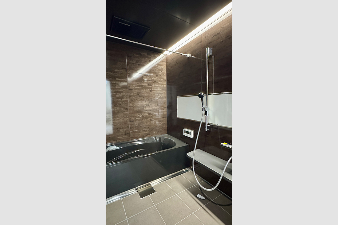 光沢仕様で高級感がある浴室。上質な空間で1日の疲れを癒す至福のバスタイムを実現。